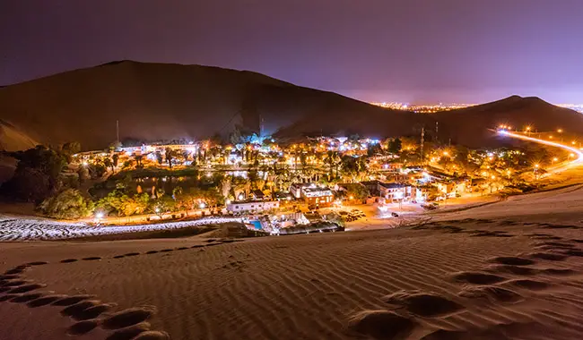 The city of Huacachina has surrounded by massive sand dunes that extend as far as the horizon. It makes a beautiful sight to behold. Tourists who love to climb mountains can also climb these sand dunes and walk on them. However, it is not an easy task, like climbing a rocky mountain.